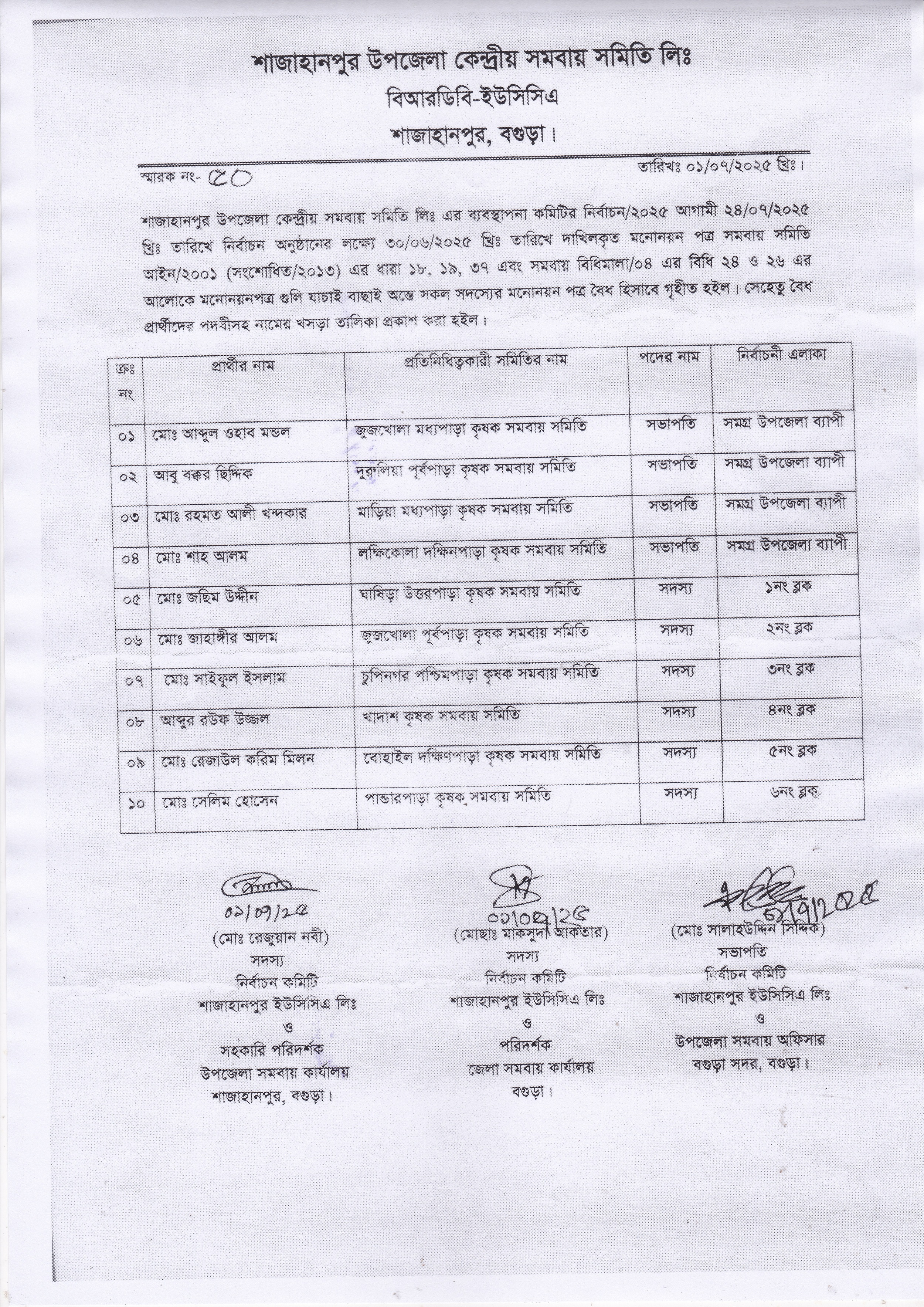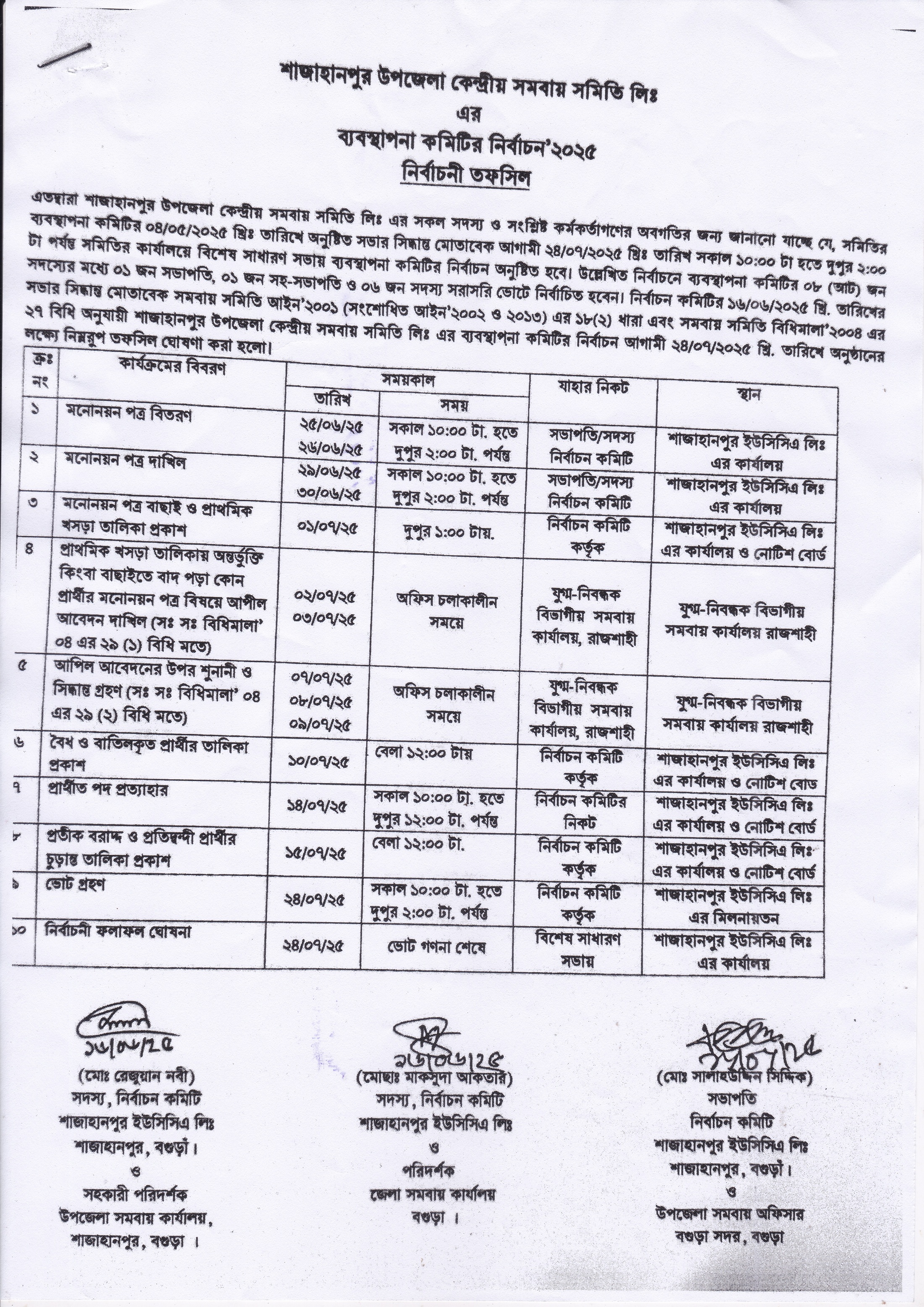 | ৩ | শাজাহানপুর ইউসিসিএ লিঃ এর ব্যবস্থাপনা কমিটির নির্বাচনে আবশ্যকীয় বিষয় ও প্রার্থীদের যোগ্যতা জ্ঞাতব্য বিষয় | | | ১৬-০৬-২০২৫ | দেখুন |